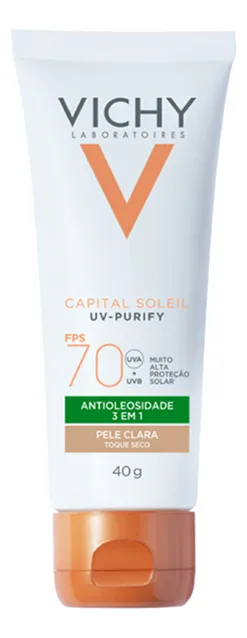 Desenvolvido especialmente para as peles que sofrem com o brilho excessivo, este item está no topo da lista de protetores solares com cor com ação antioleosidade. Ele possui argila verde e ativos que tratam a pele enquanto protegem.